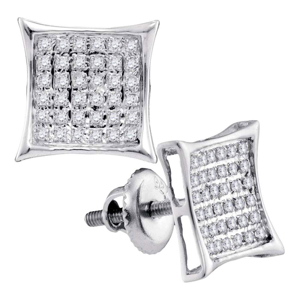 Sterling Silver Round Diamond Square Kite Cluster Stud Earrings 1/4 Cttw