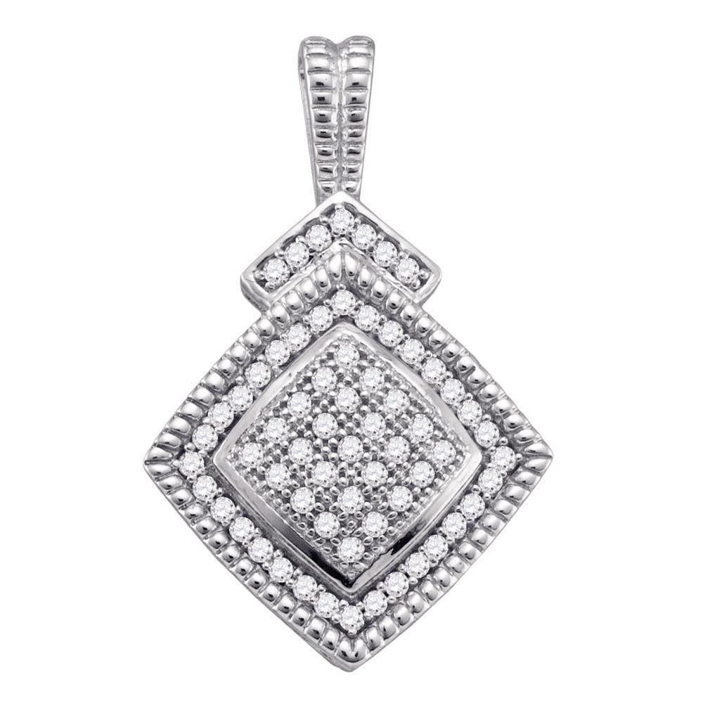 Sterling Silver Round Diamond Square-shape Womens Unique Pendant 1/5 Cttw