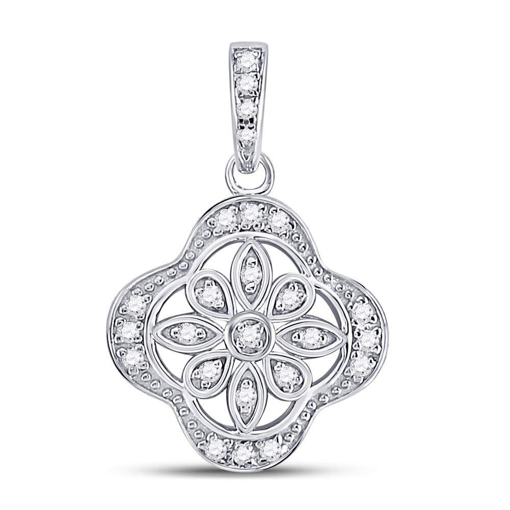 Sterling Silver Womens Round Diamond Starburst Fashion Pendant 1/10 Cttw