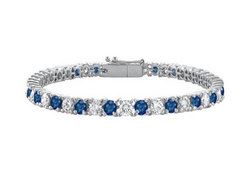 A continuous row of gems signifies your everlasting love. Deep diffuse blue sapphires alternate beautifully with white CZs in a .925 sterling silver rhodium prong-setting. With a total gem weight (TGW) of 7.00 carats. This tennis bracelet makes a great way to express your eternal love.