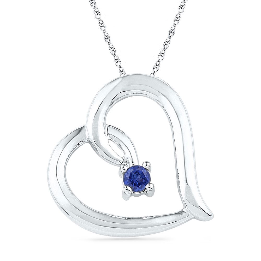 Sterling Silver Womens Round Lab-Created Blue Sapphire Heart Pendant 1/8 Cttw
