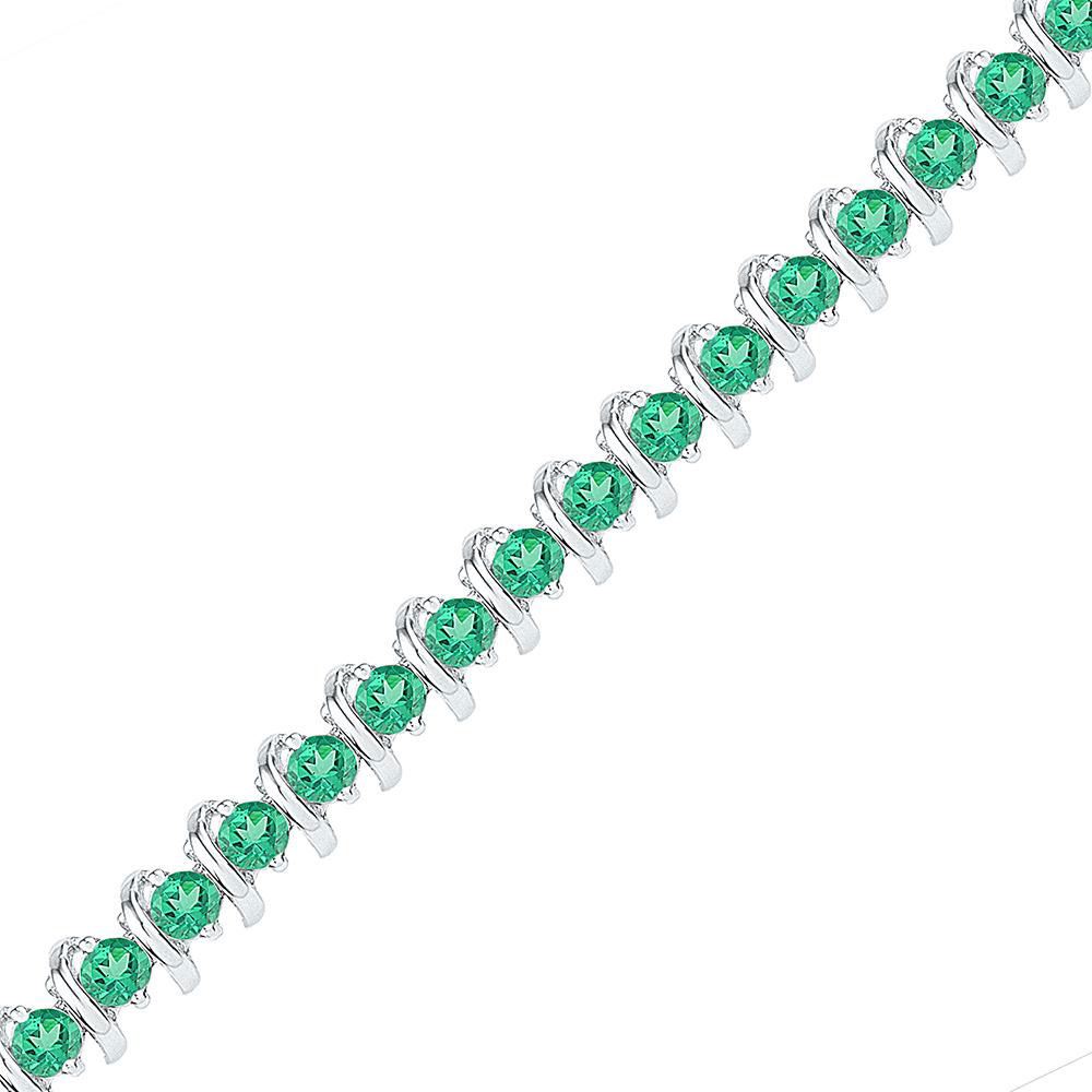 Sterling Silver Womens Round Lab-Created Emerald Tennis Bracelet 6-1/2 Cttw
