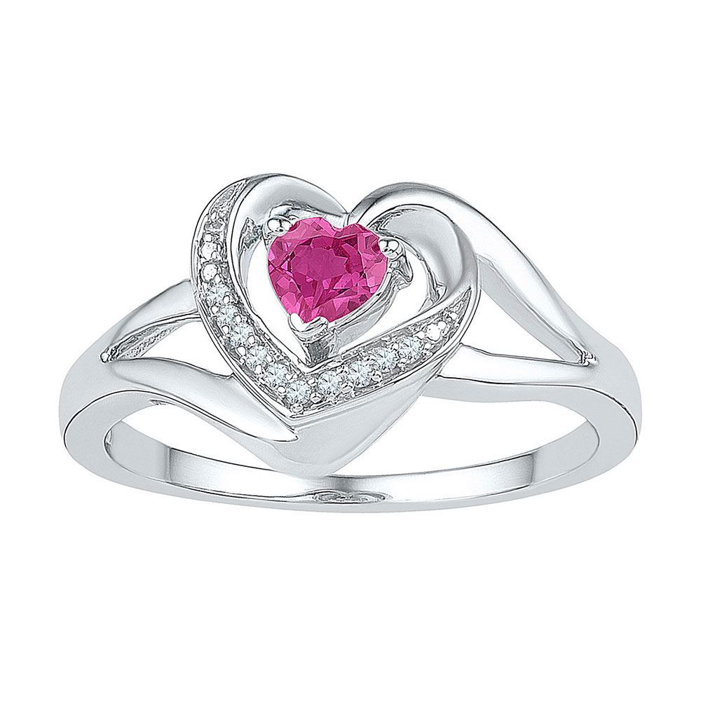 SKU: RB103888 ---- Sterling Silver Round Lab-Created Pink Sapphire Diamond Heart Ring 3/8 Cttw