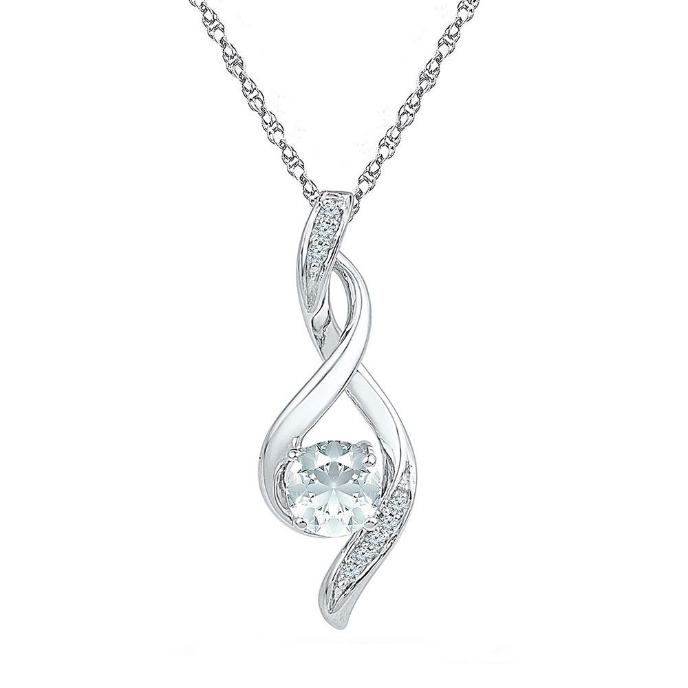 Sterling Silver Womens Round Lab-Created White Sapphire Solitaire Pendant 5/8 Cttw