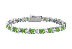 This charming tennis bracelet surrounded on your wrist with alternating round peridots and white CZs in prong-setting. The entire bracelet is made in .925 sterling silver rhodium & has a total gem weight (TGW) of 10.00 carats.