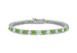 This charming tennis bracelet surrounded on your wrist with alternating round peridots and white CZs in prong-setting. The entire bracelet is made in .925 sterling silver rhodium & has a total gem weight (TGW) of 4.00 carats.