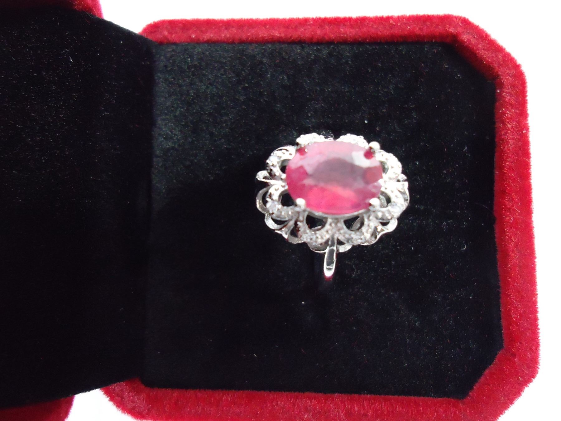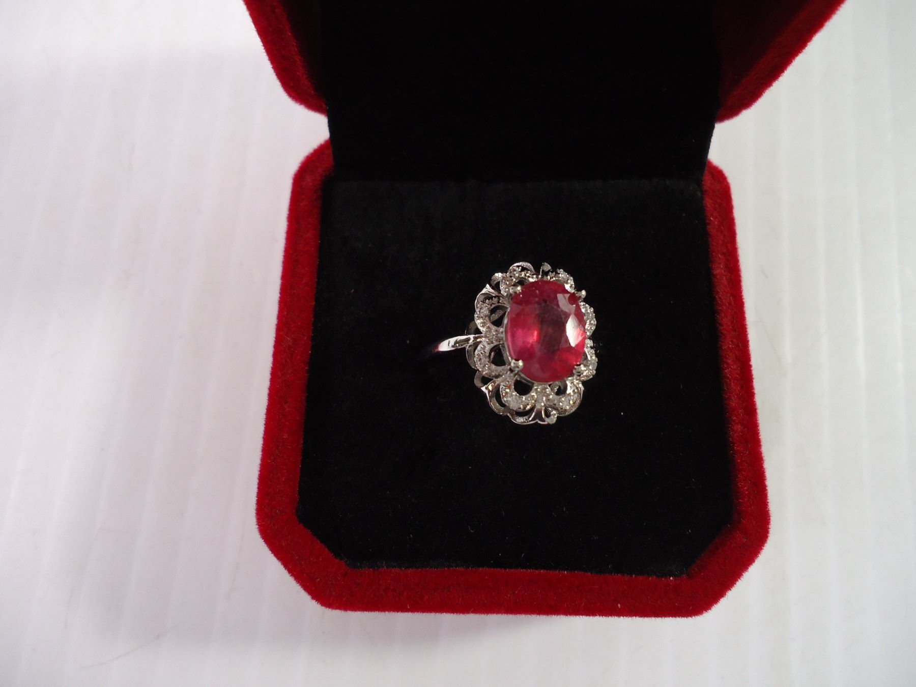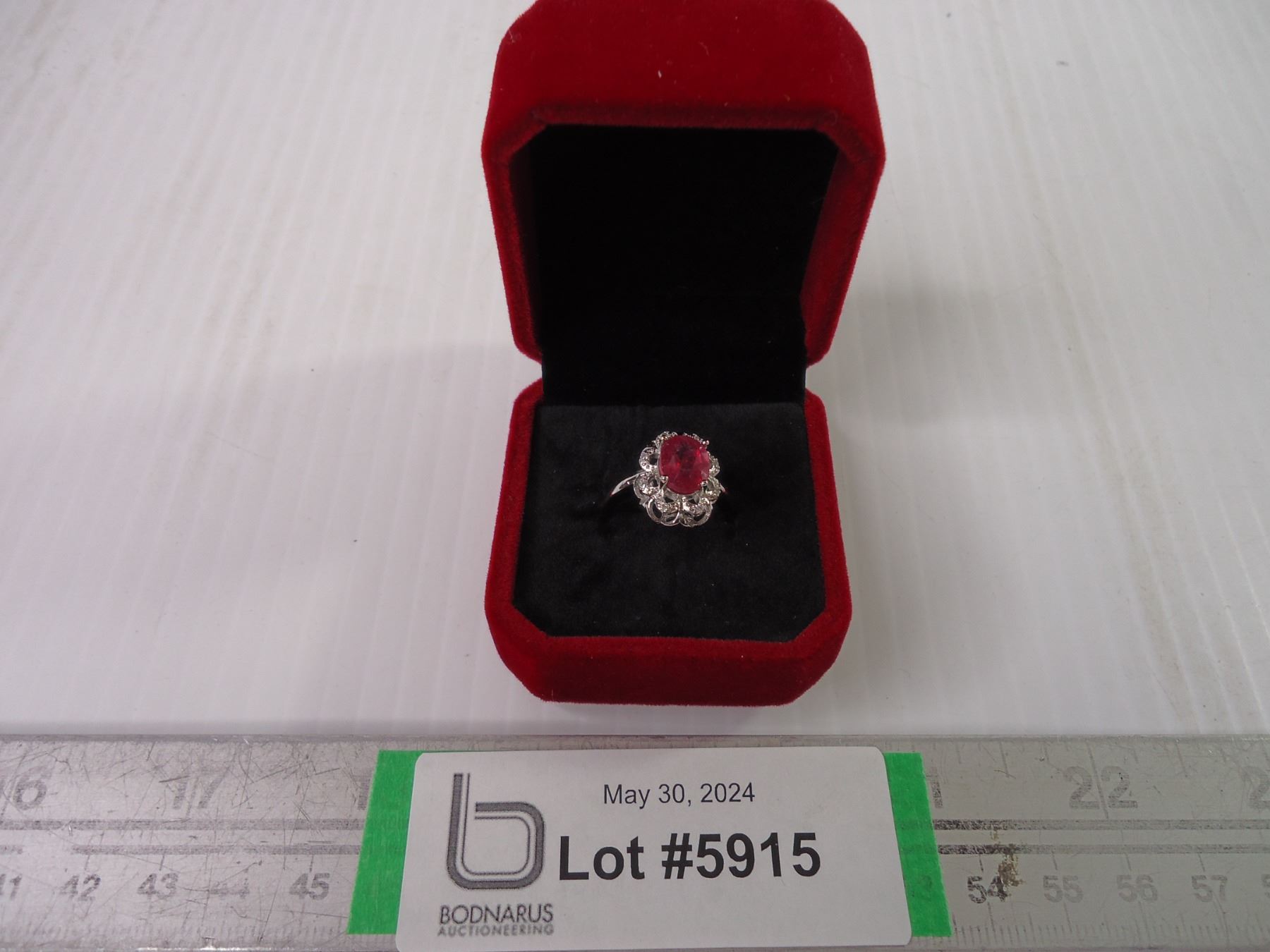 Sterling Silver Royal Ruby and Cubic Zirconia Ring-Size 7