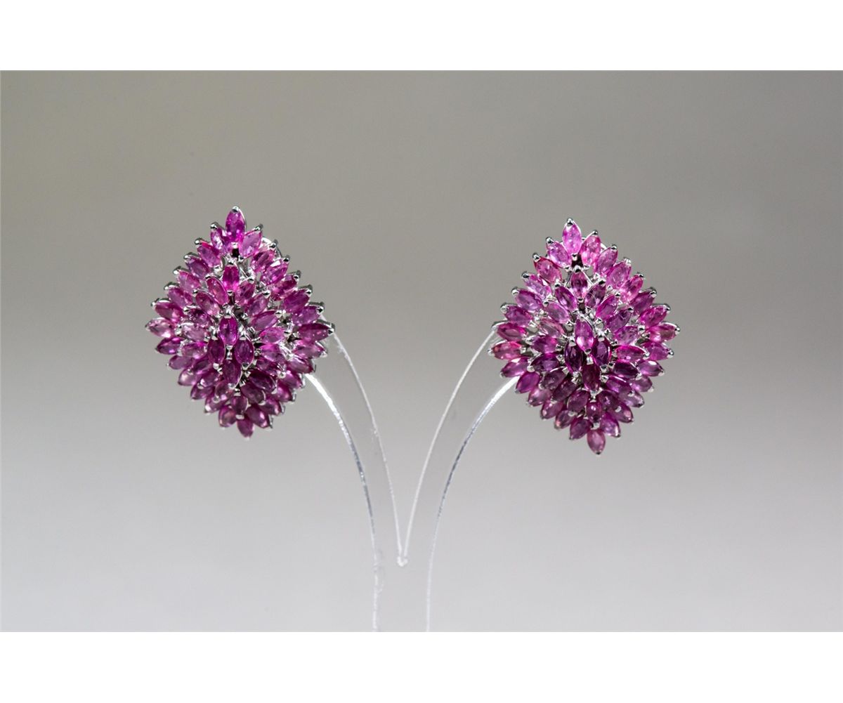 One ladies hand fashioned pair of earrings; stamped 925 sterling silver; with numerous marquise shape natural rubies (3.0ct) and numerous round white sapphires; replacement value $1250; 12.1 grams