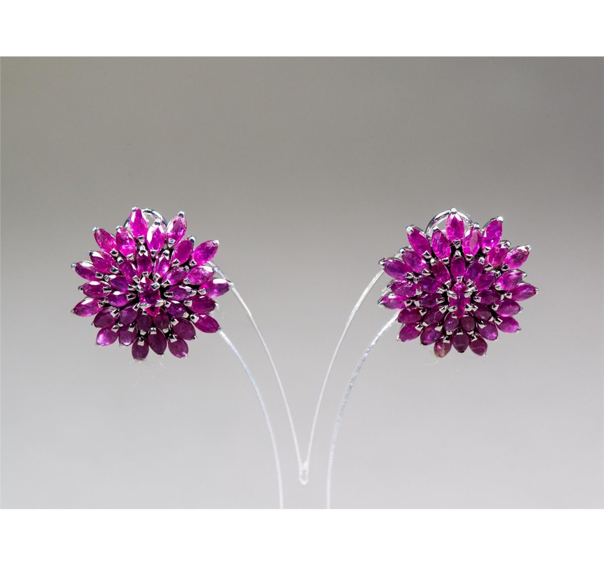 One ladies hand fashioned pair of ruby earring; stamped 925 sterling silver; with numerous marquise shape natural rubies (4.0ct); insurance replacement value $900; 9 grams