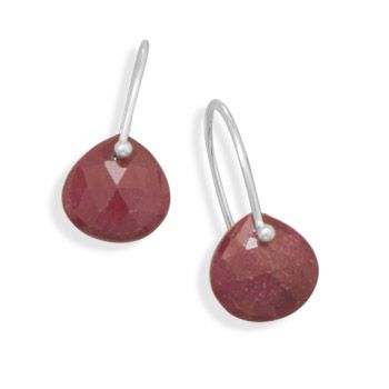 Sterling silver wire earrings with pear shape faceted rough-cut ruby