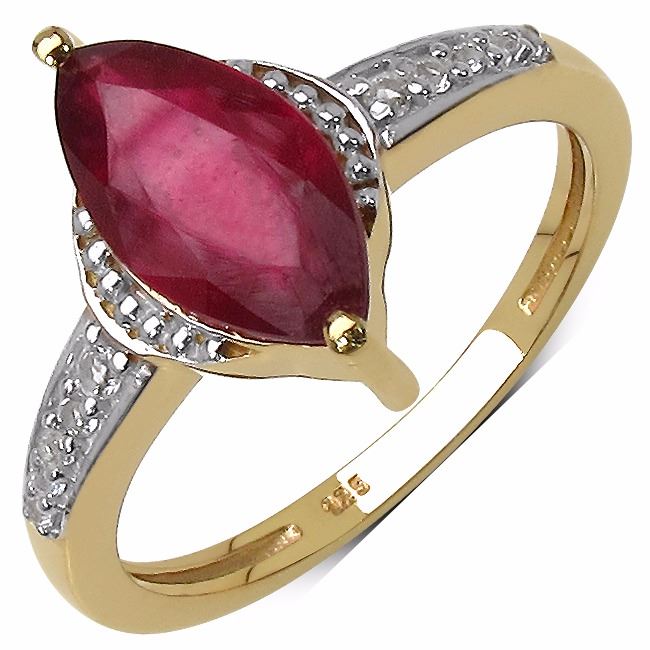 Ruby Marquise 12x6mm - 1Pc + White Topaz Round 1.50mm - 2Pcs + White Topaz Round 1.30mm - 2Pcs + White Topaz Round 1.00mm - 6Pcs ( Center Stone Height : 3.50mm ) ( White Pan Rhodium )