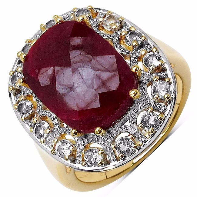 Ruby Briolite Cushion 14x10mm - 1Pc + White Topaz Round 1.60mm - 14Pcs ( Center Stone Height : 5.00mm ) ( White Pan Rhodium )