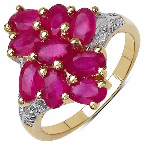 Ruby Oval 5x3mm - 9Pcs + White Topaz Round 1.00mm - 12Pcs ( White Pan Rhodium )