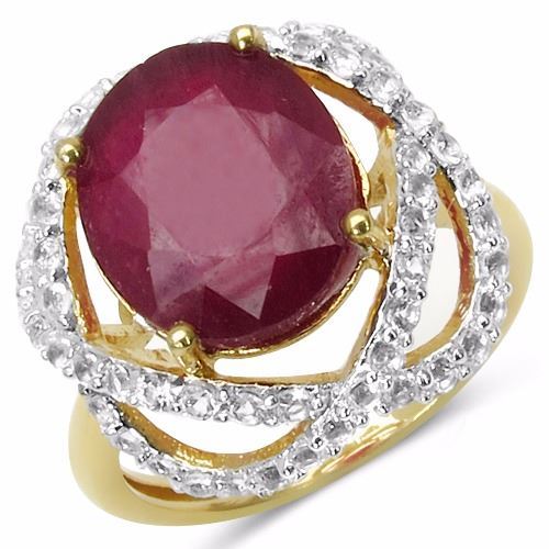 Ruby Oval 12x10mm - 1Pc + White Topaz Round 1.50mm - 60Pcs ( Center Stone Height : 4.00mm ) ( White Pan Rhodium )