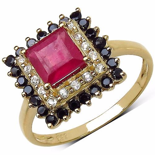 Ruby Square 6.00mm - 1Pc + Black Spinel Round 1.50mm - 24Pcs + White Topaz Round 1.30mm - 16Pcs