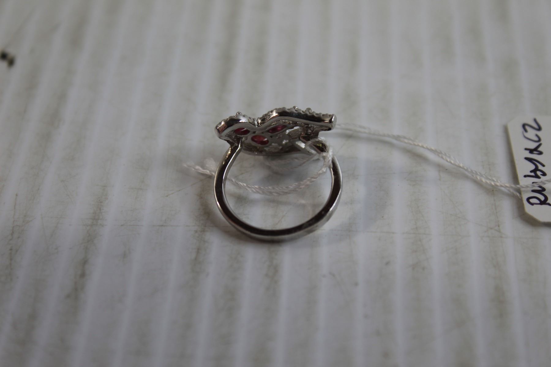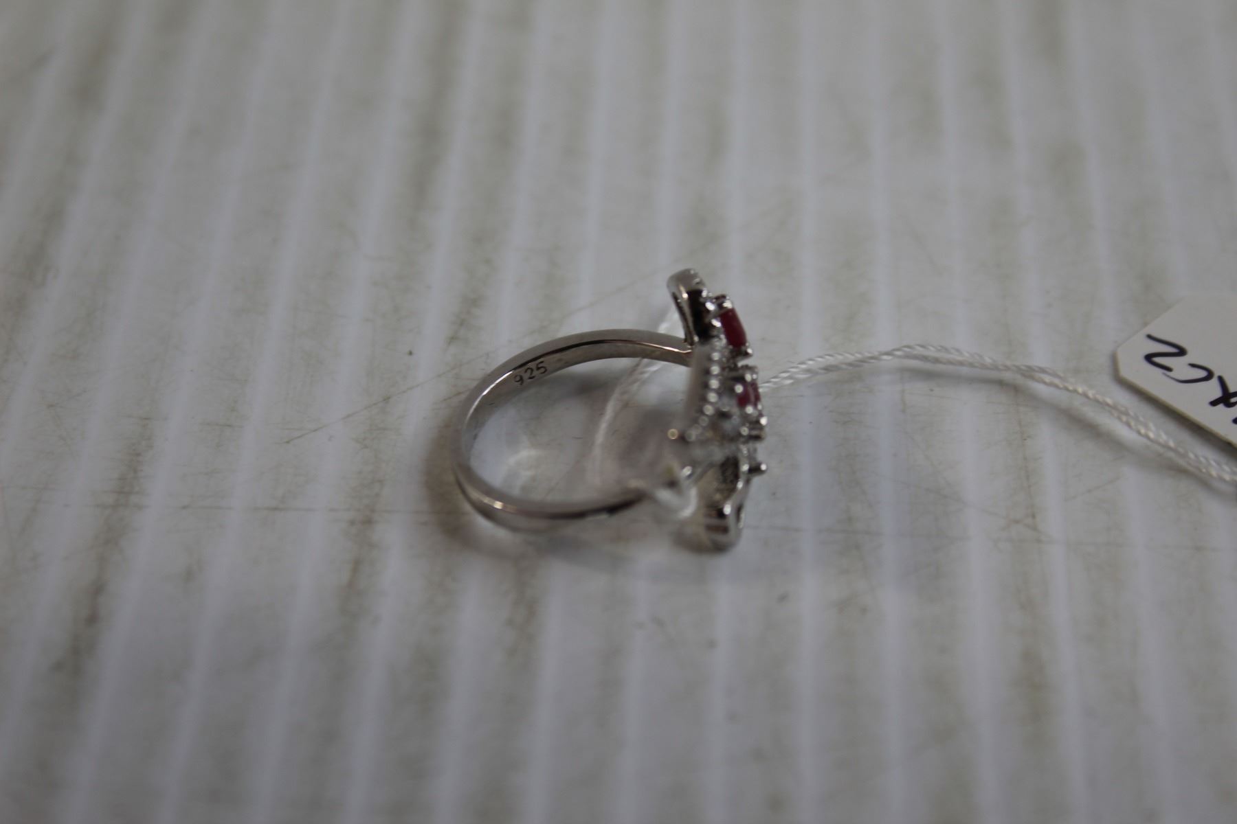 Sterling Silver Ruby and Cubic Zirconia Ring - Size 7.75
