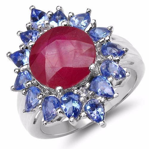 Ruby Round 10.00mm - 1Pc + Tanzanite ( A-A+ ) Pears 4x3mm - 14Pcs + White Topaz Round 1.60mm - 2Pcs