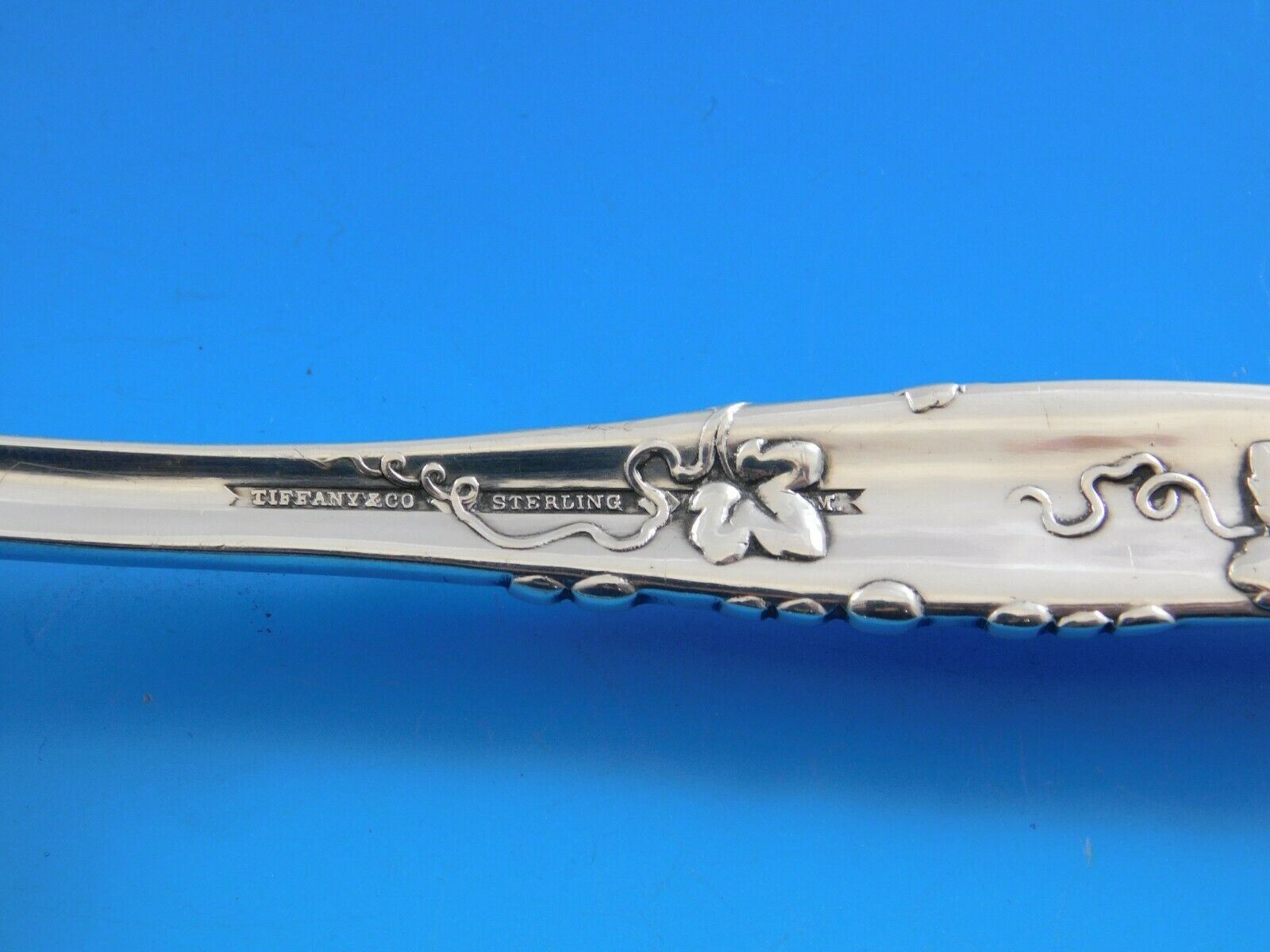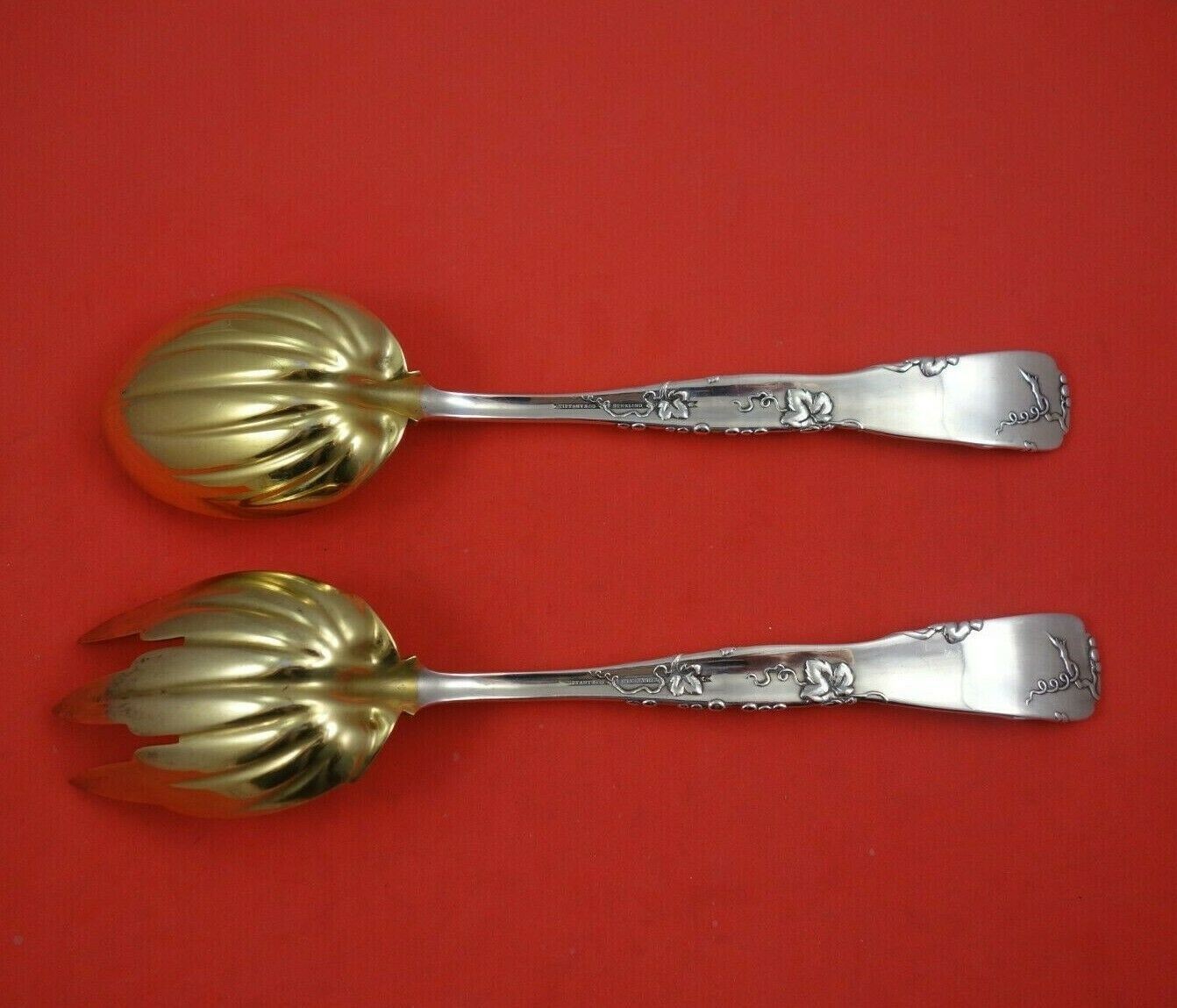 Sterling silver Salad Serving Set 2-Piece Gold Washed with Grapes, Pointed, 10" in the multi-motif pattern Vine by Tiffany and Co. It is not monogrammed and is in excellent condition.