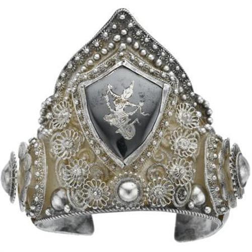 <B>Sterling Silver, Siam Bracelet</B></I><BR><BR>The Siam cuff is enhanced by intricate designs, in sterling silver. Gross weight 64.50 grams. <BR><I>Dimensions: 6-1/2 inches x 2-5/8 inches</B></I> <B>Condition Report:</B> Good condition.<BR>The bracelet is slightly scratched.<BR>The featured panel is porous.<BR><BR><b>Shipping:</b> Miscellaneous Collectibles, Smal (<a target="_blank" href="http://www.heritageauctions.com/common/shipping.php">view shipping information</a>)