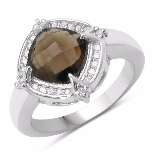 Smoky Quartz Briolite Cushion 8.00mm - 1Pc + White Topaz Round 1.20mm - 4Pcs + White Topaz Round 1.00mm - 20Pcs ( Center Stone Height : 4.00mm )