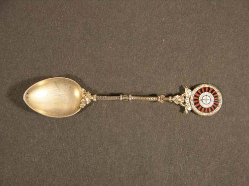 Sterling silver souvenir spoon, Monte Carlo, enameled handle with roulette wheel, 4.75" Ex. cond.