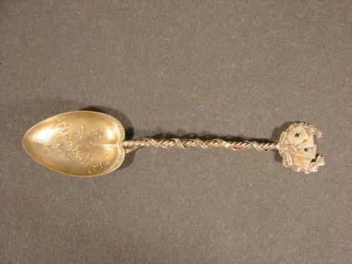 Sterling silver souvenir spoon, with enameled playing card handle - monogrammed L.R.B., Anaconda, MT., 5.5" Ex. cond.
