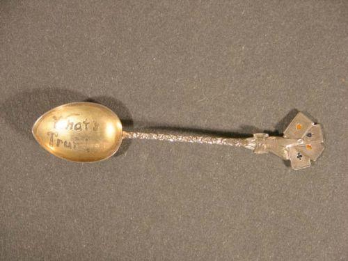 Sterling silver souvenir spoon with playing card enameled handle. "Whist 1893" on back. "Whats trump" on bowl. 4" Ex. cond.