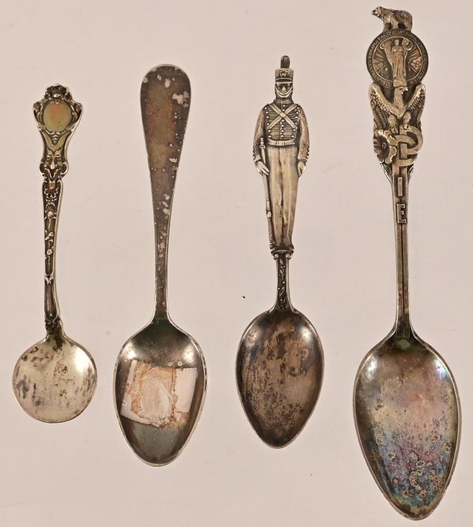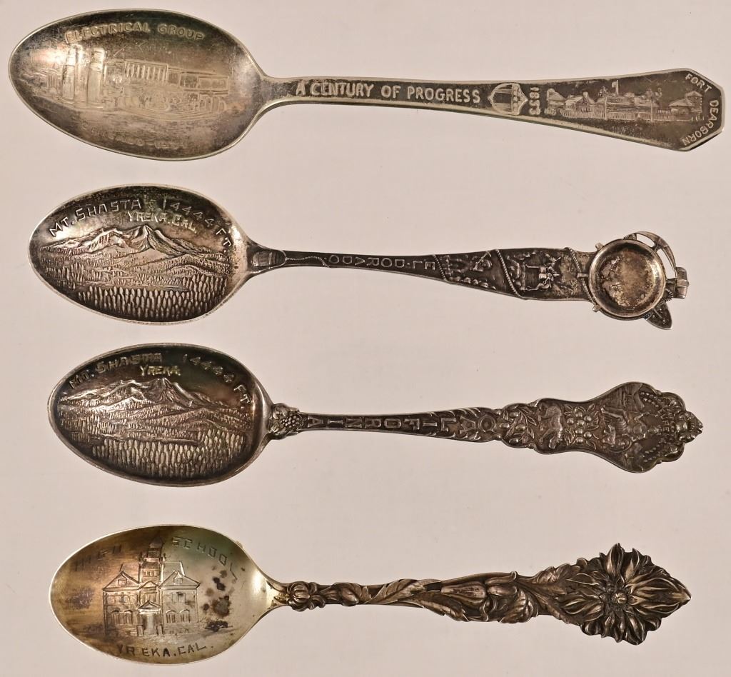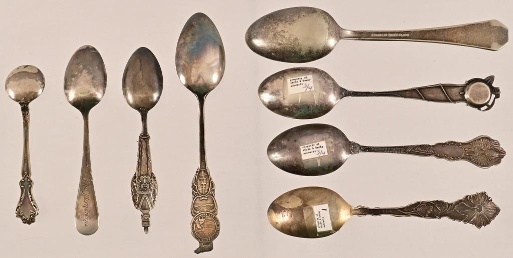 Collection of (7) Sterling Silver Souvenir Spoons and (1) Silver Plate Souvenir Spoon.