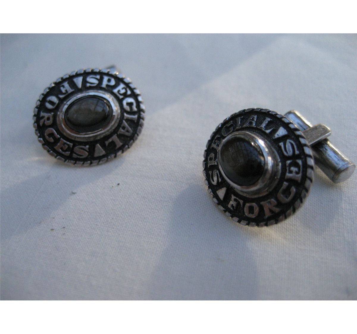 Sterling Silver Special Forces Cuff Links Pair with center stones