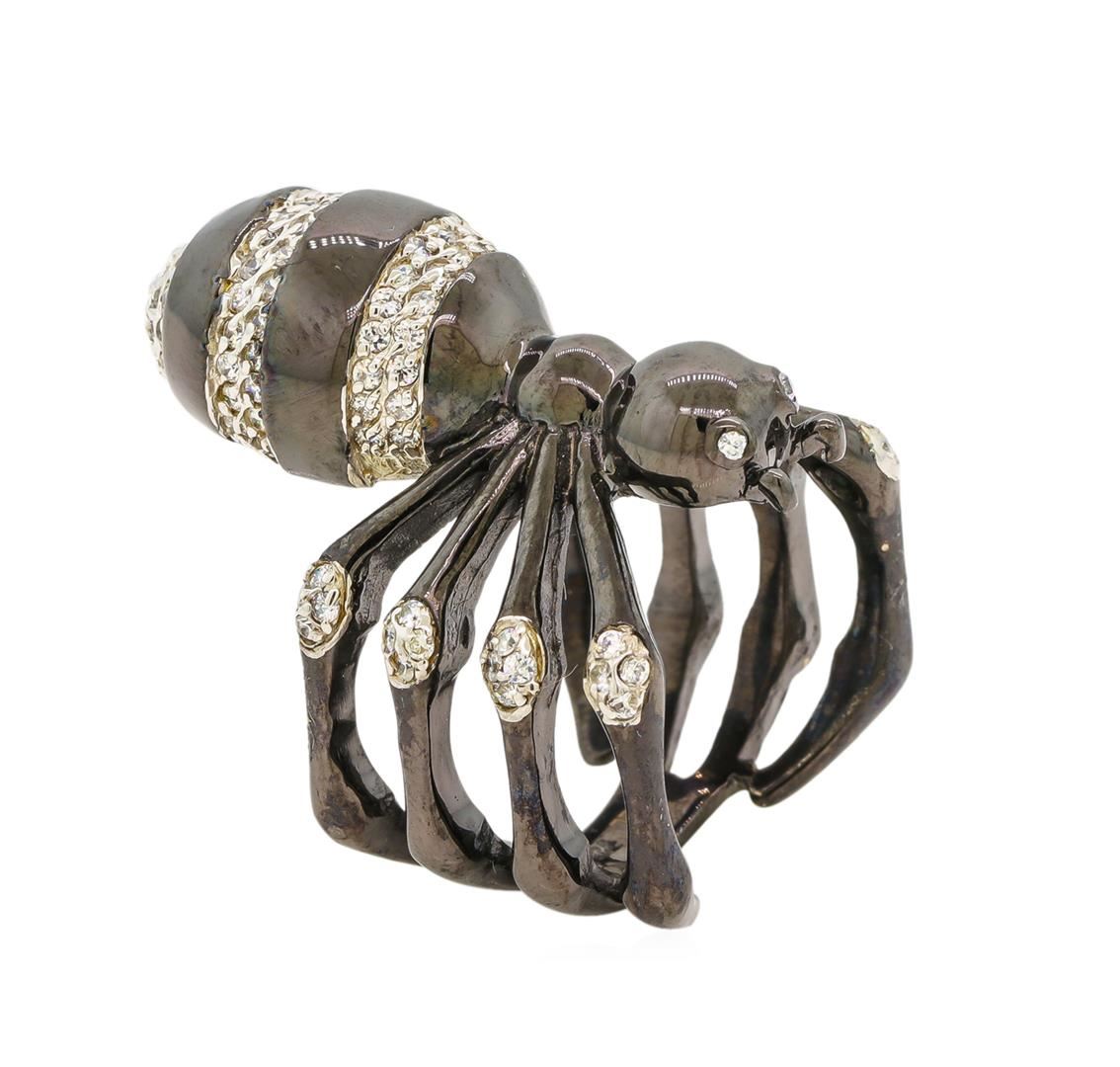 One of a kind high fashion sterling silver Spider Ring weighing 14.3 grams. Containing: Cubic Zirconia. This sterling silver promises a lasting shine.