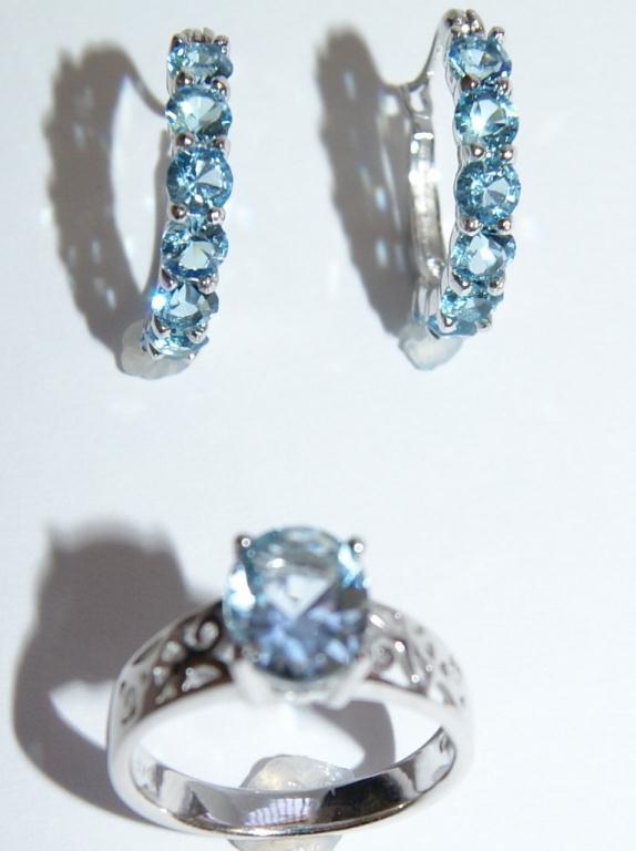 Sterling Silver Blue Spinel Ring and Hoops Set