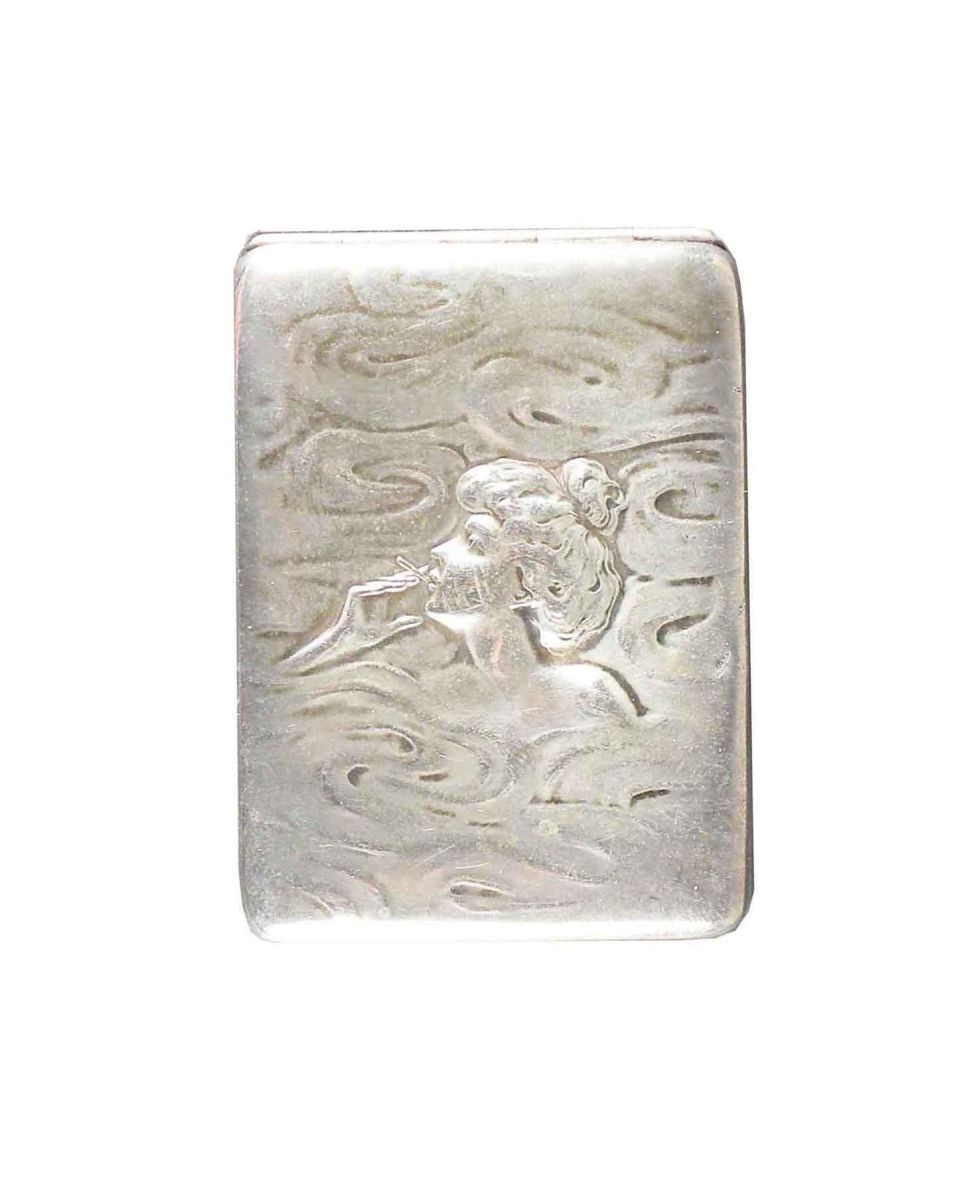 Sterling Silver St. Paul Match Book Cover. St. Paul Minn. 1910. For J. George Smith. Depicting Woman smoking cigarette. Excellent condition. 1 3/4 X 2 3/8 inches.