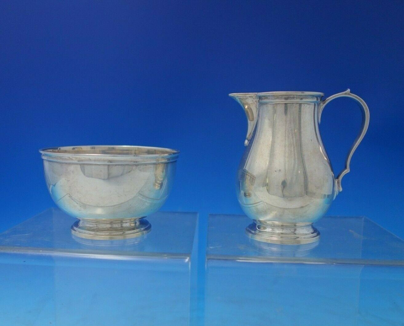 Outstanding Hamilton aka Gramercy by Tiffany and Co sterling silver sugar and creamer two-piece set marked #22988, circa 1930. This set includes: