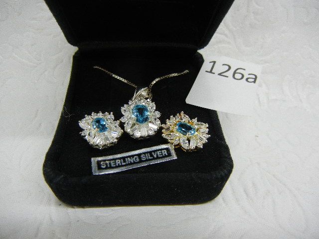 Sterling Silver Swiss Blue Pendant & Earring Set