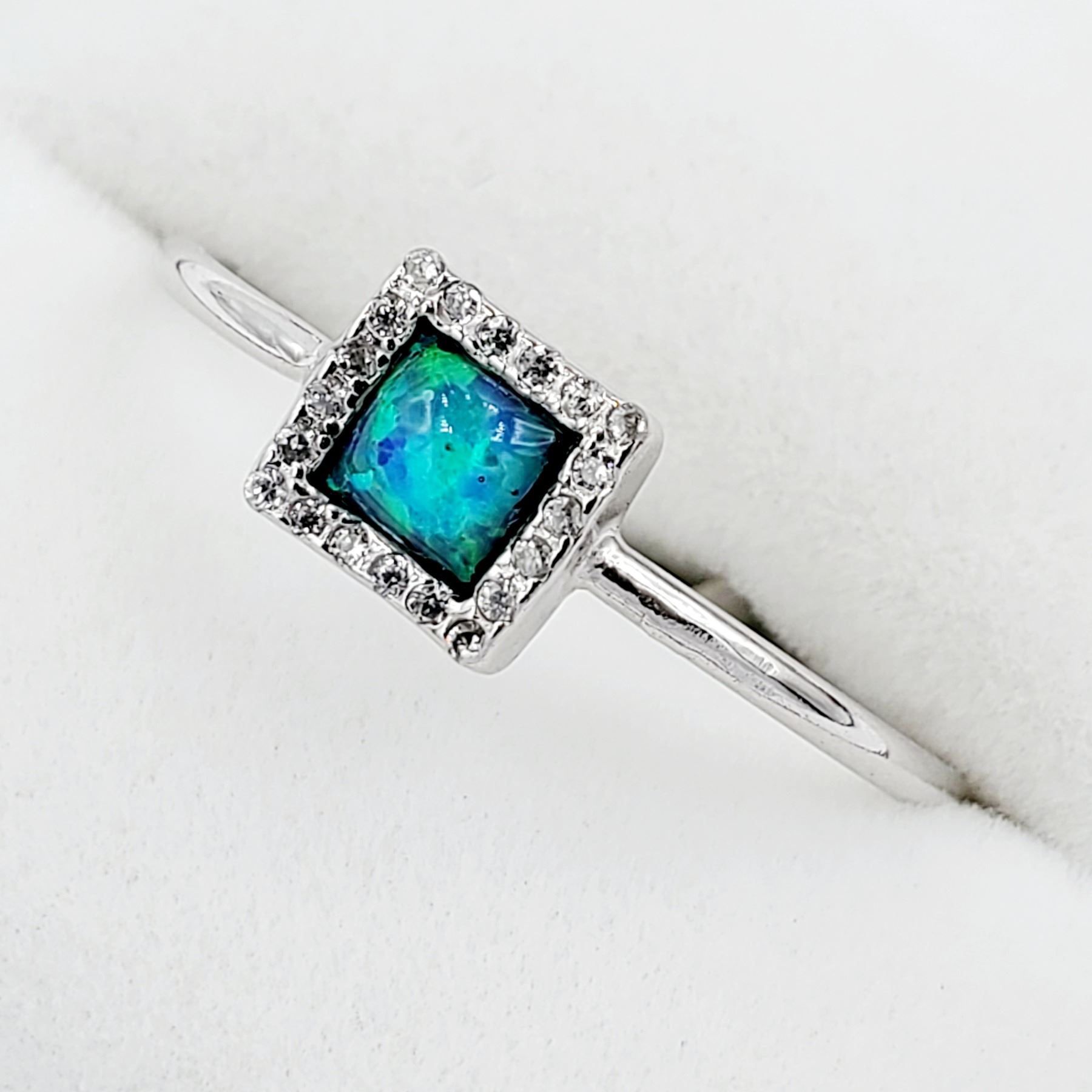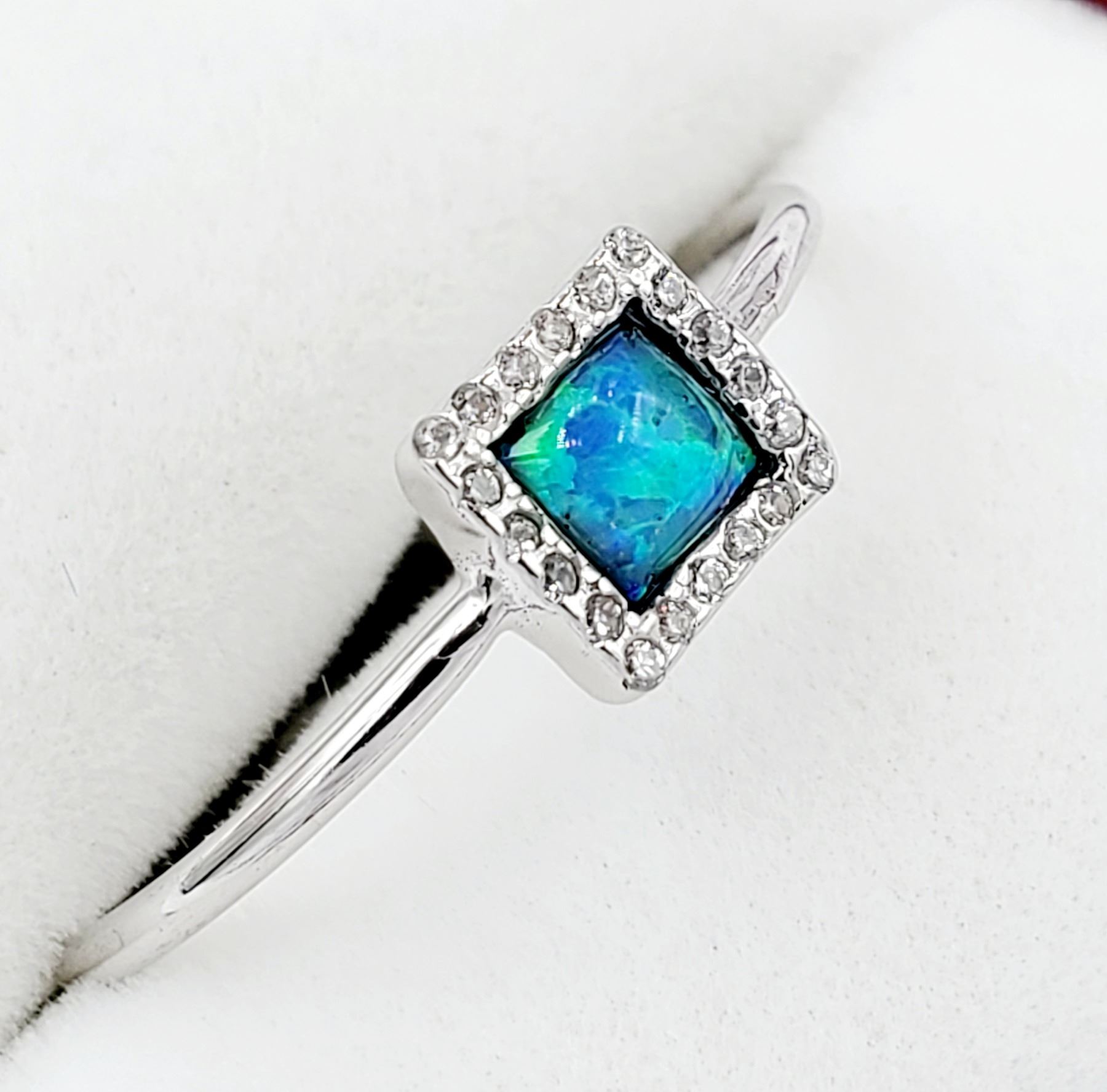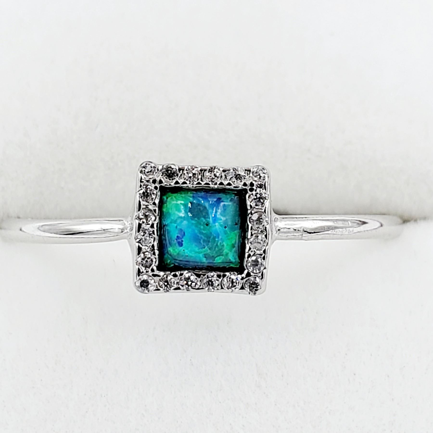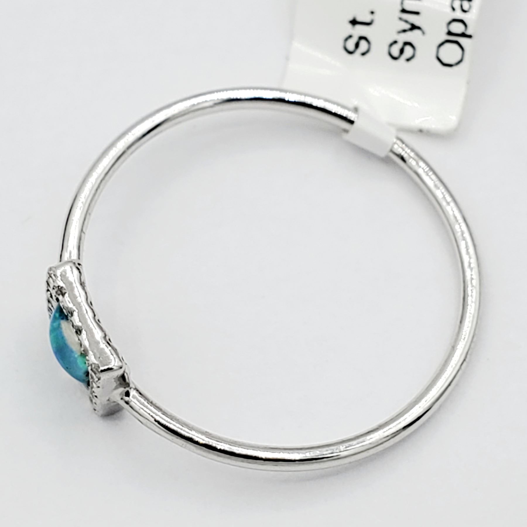 Sterling Silver 4mm Synthetic Opal & Cubic Zirconia Ring, Size 9, retail $150.00
