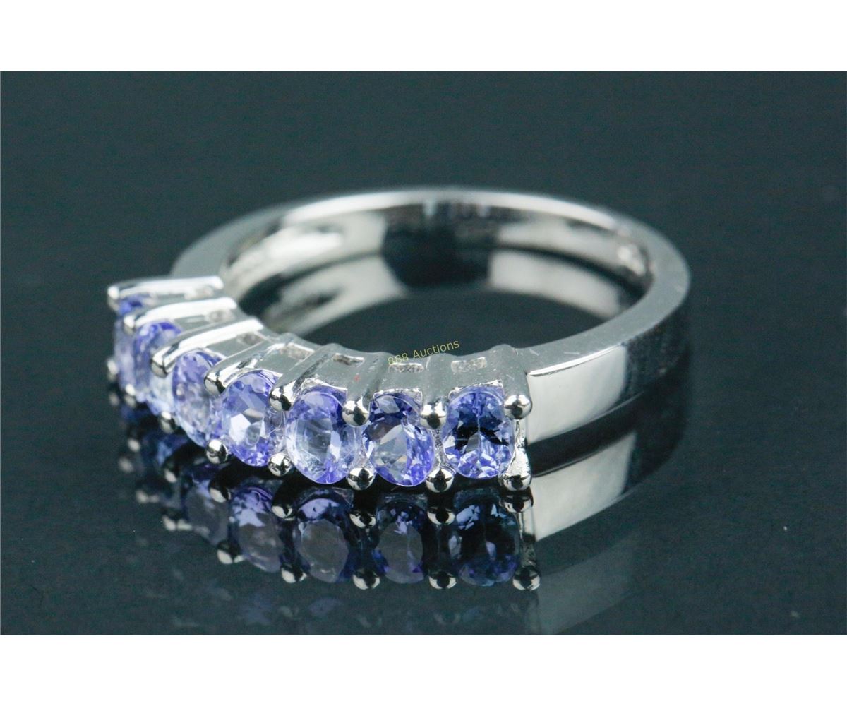 Stamped 925 silver gemstone ring; comprised of 1.75 ct oval shape natural tanzanite; replacement value CAD $368; 3.46 grams