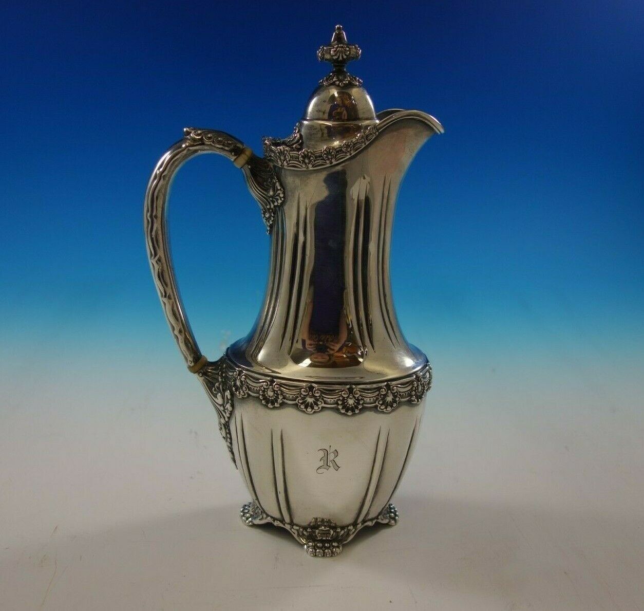 1 - Coffee Pot: Marked 2 3/4 pint/10 cup, measures 10" tall x 9", and weighs 25.3 troy ounces.