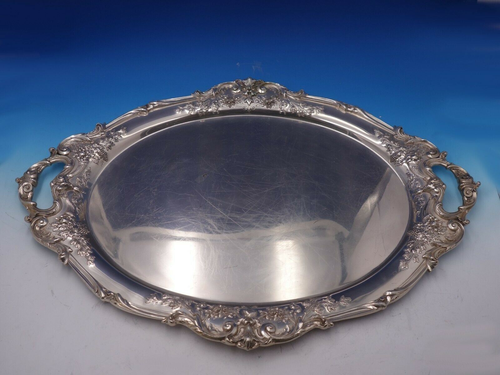 1 - Tray (hand chased): Marked #752A, measures 30 3/4" x 21 1/2", and weighs 158 troy ounces.