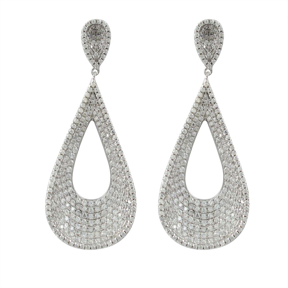 Sterling Silver Teardrop Post Earrings, White Czs Pave, 53Mm Long