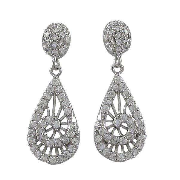 Sterling Silver Teardrop Swirl CZ Post Earrings, 1.14"