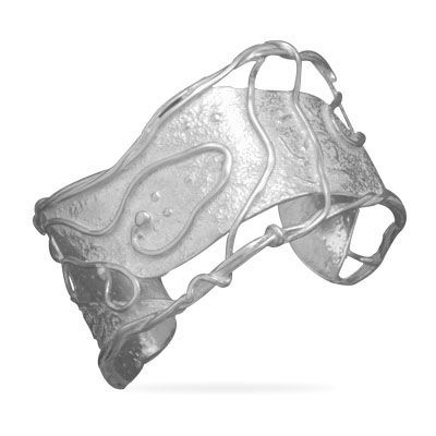 32mm polished and textured sterling silver designer cuff bracelet with abstract design.
