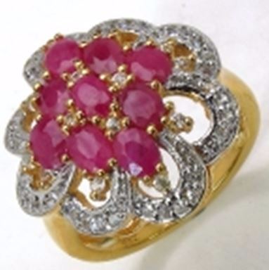 Thai Ruby Oval 4x3mm - 9Pcs + White Topaz Round 1.30mm - 14Pcs + White Topaz Round 1.10mm - 40Pcs ( White Pan Rhodium )