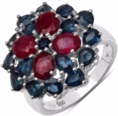 Sterling Silver Thai Ruby and Blue Sapphire Ring