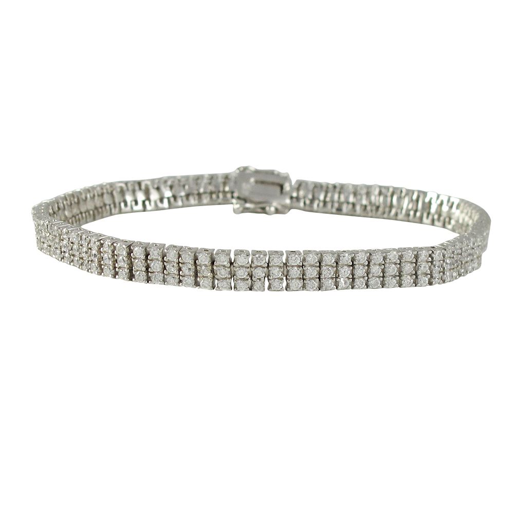 Sterling Silver Three Row CZ Tennis Bracelet