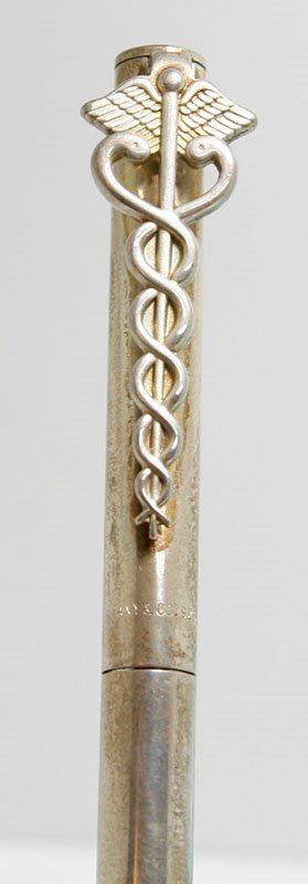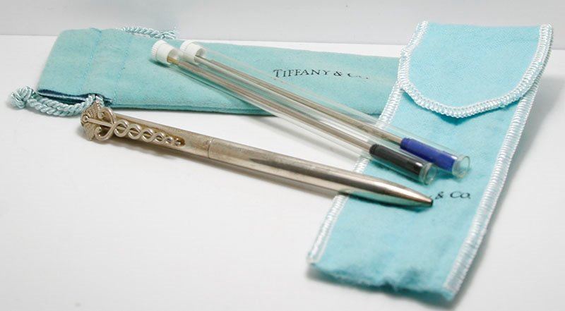Sterling Silver Tiffany & Co. Ball Point Pen, Cadeceus Symbol - With Extra Inks In original Tiffany & Co. Bags