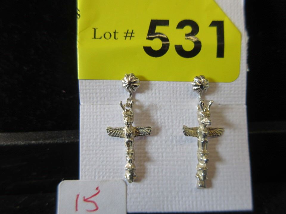 Sterling Silver Totem Pole Earrings - 1 3/4  Tall