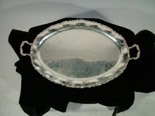 Silver tray with handles at each end, 26 1/2" by 16 1/2"