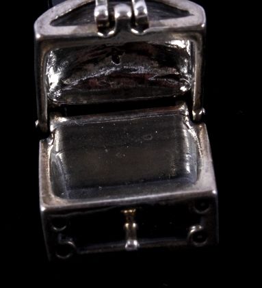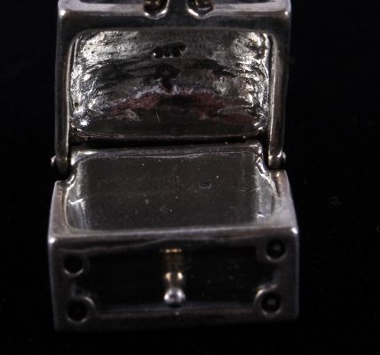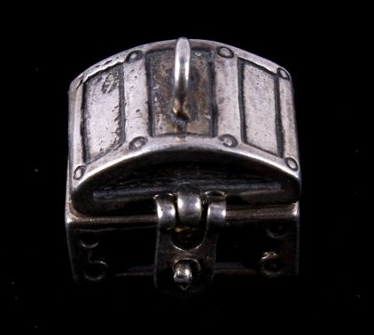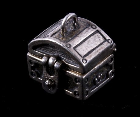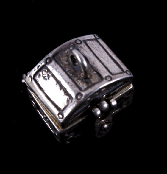 This lot includes a handcrafted Sterling Silver Treasure chest pendant. This petite chest measures 0.75" x 0.75" x 0.5". It is in all around excellent condition and will stay closed when latch is engaged.