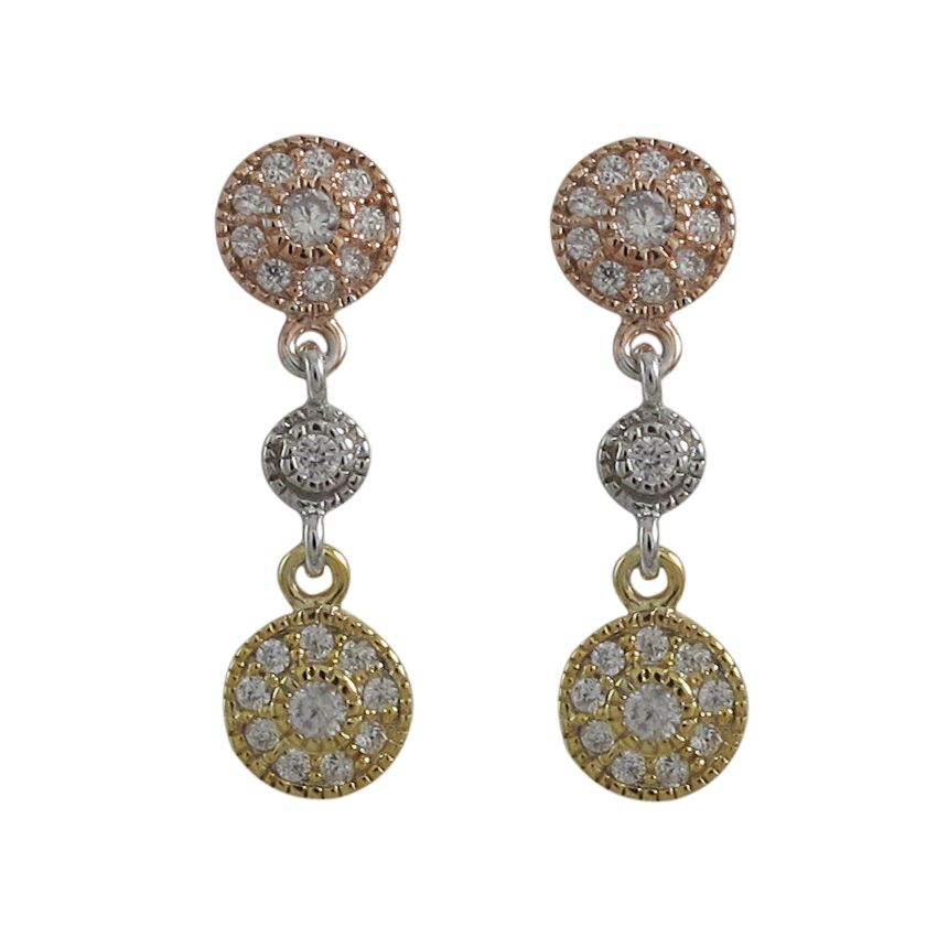 Sterling Silver Tri Color CZ Post Earrings- 0.98"