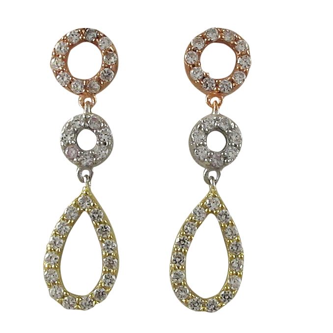 Sterling Silver Tri Color Dangling Post Earrings-1.26"